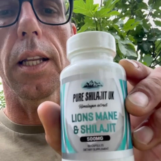 60 capsules • 250mg Lion's Mane + 250mg Shilajit • 1 cap 3x/day